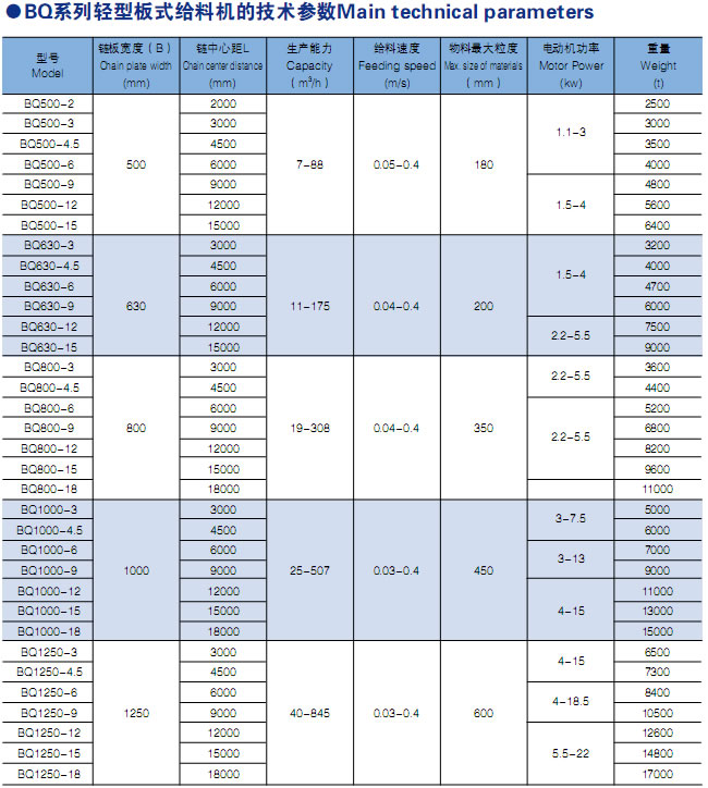 | 輕型板式給料機用來處理100mm-200mm塊狀物料,廣泛用於有色、礦山、水泥、化肥、化工、冶金造紙等行業的采選、輕運、配料等工藝過程中,適用於沿水平或傾斜段向工作機械或料倉、漏鬥等其他容器連續均勻地輸送物料。物料容重不大於1.2t/m3,塊重不超過140kg,溫度不高於350℃的散狀物料。WBL 中型板式給料機(簡稱板喂機)是一種散狀物料輸送設備,把間歇式給料轉變為連續性給料。本公司在引進國外先進技術上全新開發的 WBL 型板喂機,具有牽引力大,漏料少,運行平穩,使用壽命長,檢修方便的優點。 |